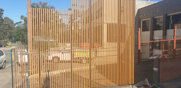 This screen was installed at an aged care facility. It uses recycled timber and has stainless wire runners through the middle. Creepers will climb the wire and protrude through the recycled timber. I would love to see it in a few years time.