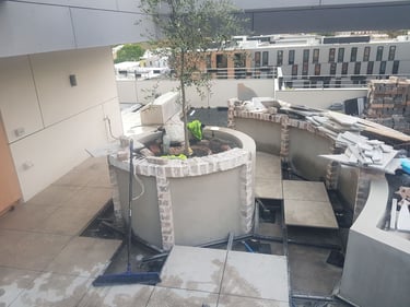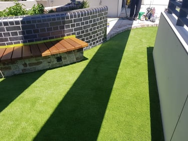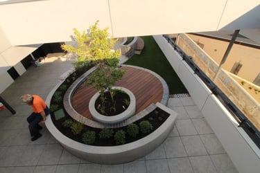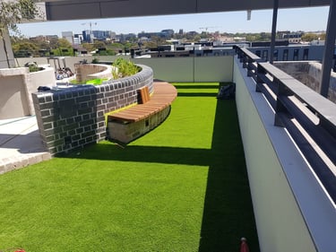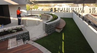 With multiple decks on multiple levels, this project included tile decks, grass decks, timber decks and benches.