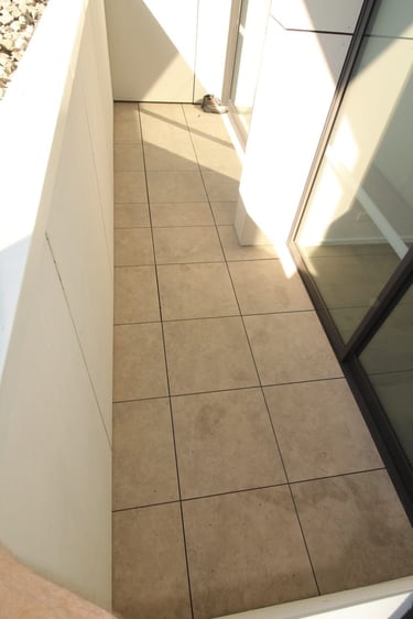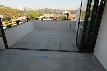 We demolished the deck, then matched the internal floor heights with a new tile deck on an aluminium substructure. They loved that the tiles could be lifted for under deck access and no grout is used to allow water to escape between the tiles. The open style of the tiles also means that ground movement is not an issue.