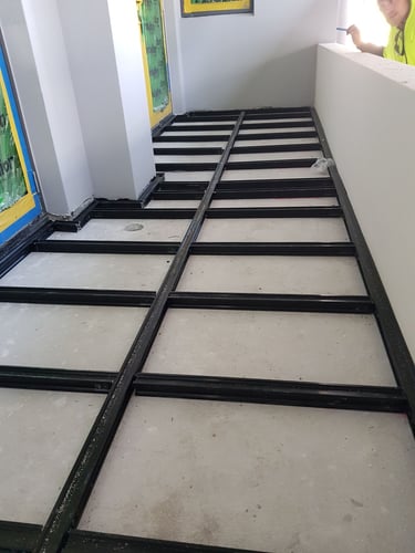 This project had a number of challenges. We needed to provide a commercial grade composite with excellent slip resistance that could be used with only 20mm of airflow. Due to the extremely low finish levels, we could not use screws in the boards. We also needed to design the deck to allow water to drain away.